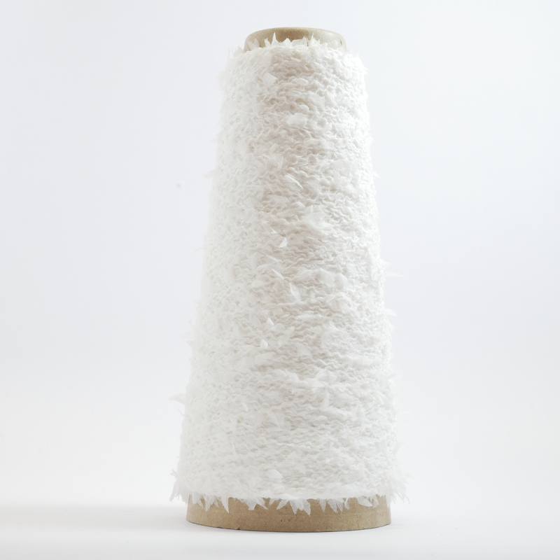 A unique fancy yarn with an unusual 3D texture, on cones for machine knitting.