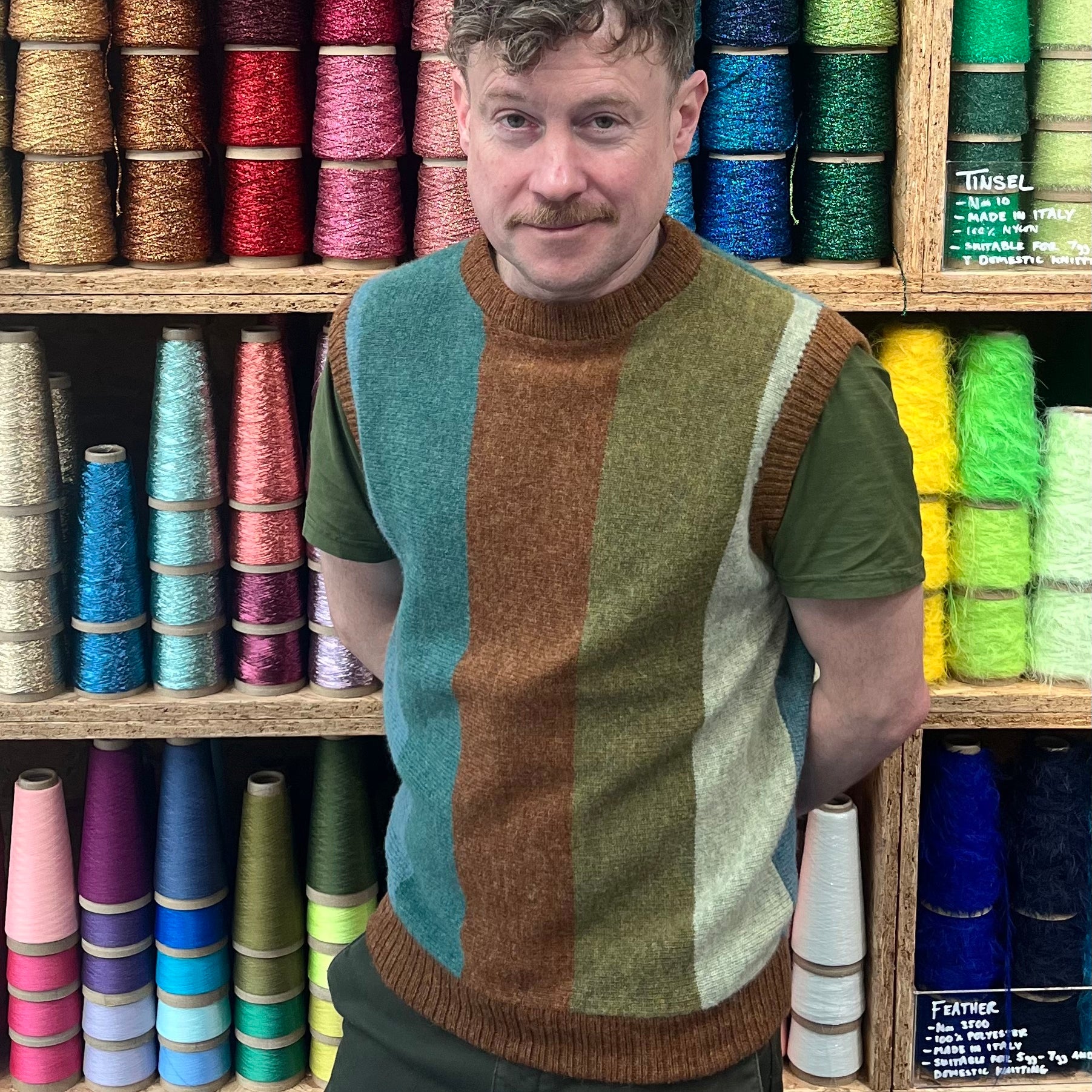 We will make a striped sweater vest, a classic fully fashioned machine knitted vest/tank top. A perfect garment for someone who has some experience of machine knitting but hasn't followed a pattern or constructed a garment before. The course focusses on a simple sideways knitted 5 x colour stripe fully fashioned garment. With simple trims, edges and neckline details to add an extra level of finish.
