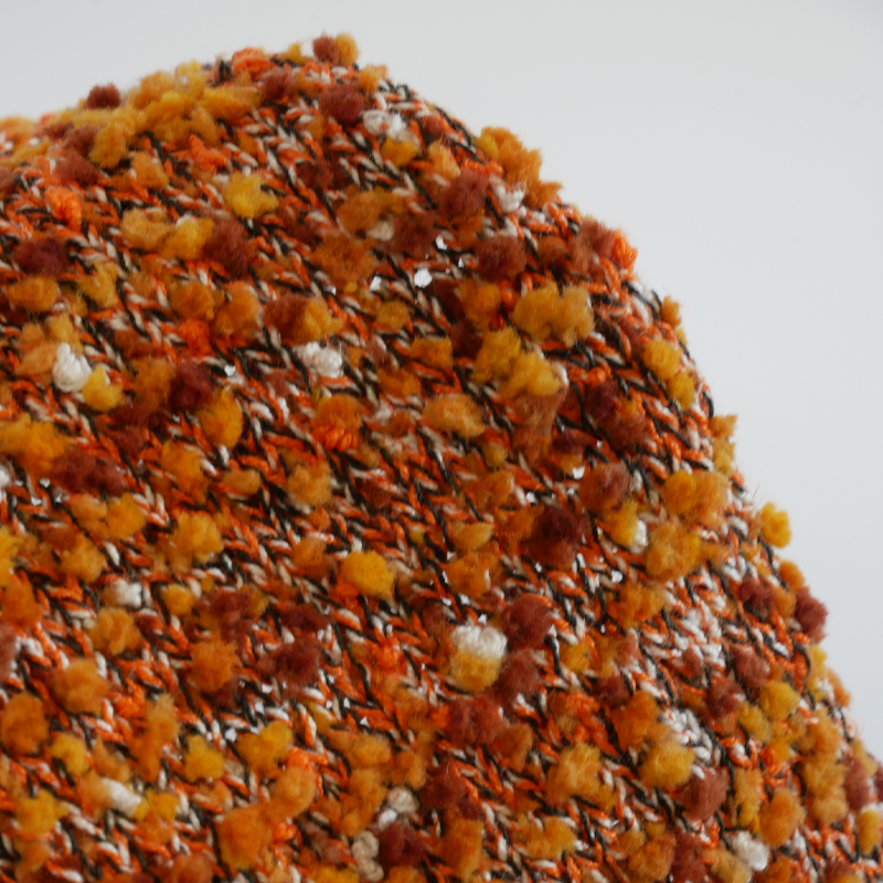 Once knitted, the fuzzy little pop-poms are brought together into a surprisingly dense irregular spotty texture.