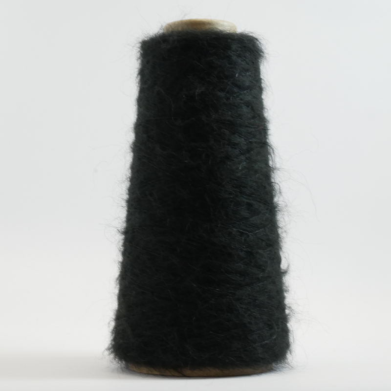 Mohair yarn on cones for machine knitting. As with most mohair you can brush the knitting to release the fibres, resulting in a light, fluffy fabric.