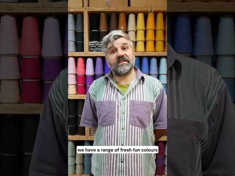 A coloured lambswool and a lighter coloured slub lambswool are twisted together to make a fun textured yarn in fresh, pop colours. When knitted, the slub yarn creates irregular blooms within the knit structure, with the twisted colour creating flecks of brightness.